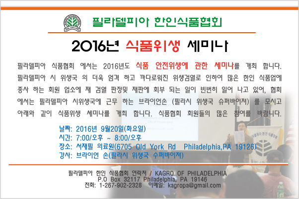 [공지] 2016년도 식품 안전 위생 교육 세미나