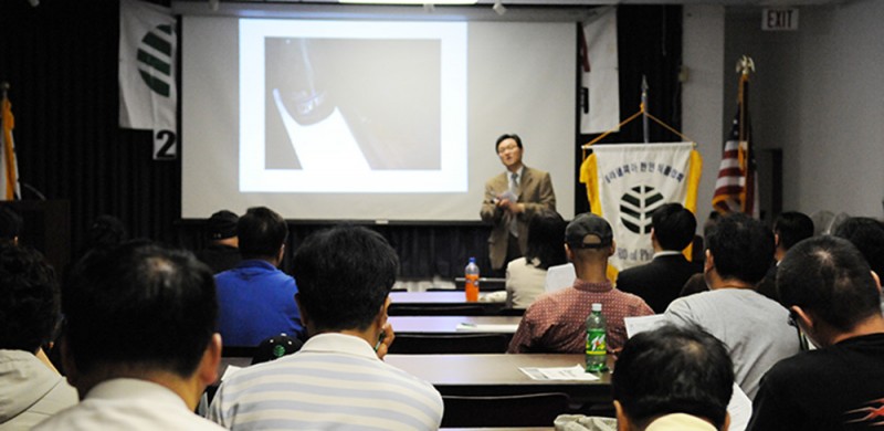 [필라델피아 한인식품협회에서 개최한 위생 세미나에서 위생국의 브라이언 손 국장이 주말이나 저녁에도 인스펙션을 실시하는 경우가 늘고 있다며 항상 준비하는 자세로 임할 것을 당부하고 있다]