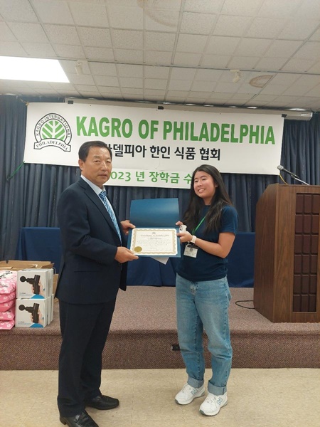 필라델피아 한인식품인협회는 23일 서재필 센터에서 2023년도 장학금 수여식을 갖고 대니얼 리 학생 등 12명에게 1천 달러씩 모두 12천 달러의 장학금을 수여 하였으며, 식품인협회에서 선발한 장학생 12명은 한국인 학생 10명과 미국인 학생 2명으로 이가운데는 경찰관 자녀와 소방관 군인 자녀 등이 포함됐다.