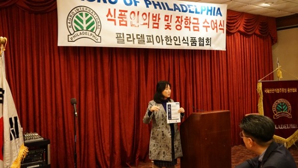 필라델피아 한인식품인협회는 2 9일 라이라이가든에서 '2020 장학금수여식'을갖고 홍예람양(어퍼더블린고교) 8명에게각각 1천달러씩 8천달러의 장학금을 전달했다.
