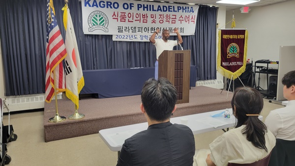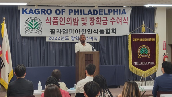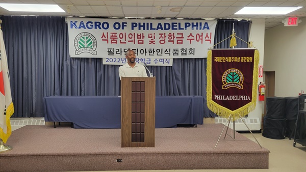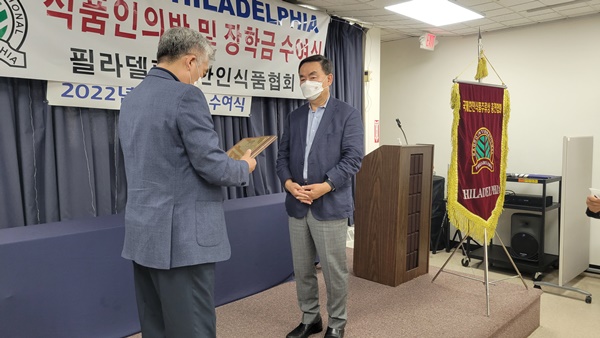 필라델피아 한인식품인협회는 서재필 봉사센터 에서 717 2022년도장학금 수여식을 갖고 센트럴 벅스 하이 스쿨의 김예준 학생과 애빙턴 하이스쿨의 자키안 자몬  한인과 미국 학생 10명에게  1 달러씩 1 달러의 장학금을 수여했다.